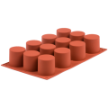 Silikomart Mold, 12"L x 7"W, (12) tall cylinder, 1-9/10" dia. x 1-9/10"H with 3 oz. capacity each, temperature range -10° to +500°F, non-stick, dishwasher safe, flexible, silicone, orange