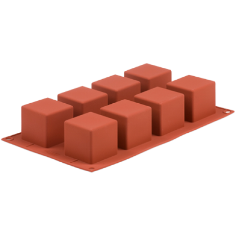 Pavoni Mold, 12"L x 7"W, (8) cube, 2" square x 2"H with 4 oz. capacity each, temperature range -10° to +500°F, non-stick, dishwasher safe, flexible, silicone, orange