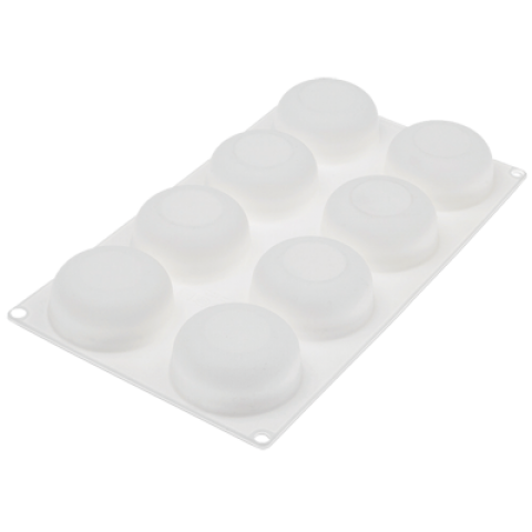 Silikomart Mold, 12"L x 7"W, (8) stone, 2-1/8" dia. x 1-3/16"H with 3 oz. capacity each, temperature range -10° to +500°F, non-stick, dishwasher safe, flexible, silicone, white