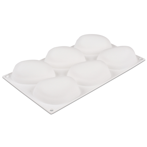 Silikomart Mold, 11-3/4"L x 6-3/4"W, (6) zen, 3-7/16"L x 1-2/5"H with 3/5 oz. capacity each, temperature range -76 to 446°F, non-stick, dishwasher safe, flexible, silicone, white