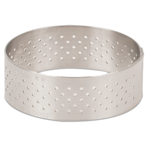 De Buyer Valrhona Tart Ring, 2-1/8" x 3/4"H, round, perforated, stainless steel