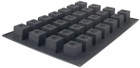 Pavoni Pavoflex Mold, 23-1/2"L x 15-3/4"W, (28) cube, with indent, 2" square x 2"H with 3-7/8 oz. capacity each, temperature range -40 to 536°F, non-stick, flexible, silicone, black
