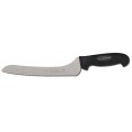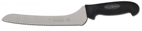 Dexter Russell Knife 9", offset, serrated, high carbon stainless steel, rubber handle, black, Made in USA, NSF