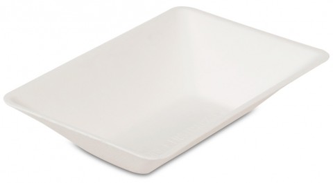 Disposable Plate, 5-1/8"L x 3-1/4"W x 1-1/10"H, rectangle, biodegradable, sugarcane, white (100 per pack)