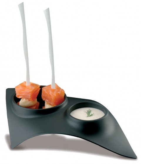 Tast Disposable Tasting Bowl, 7-1/2"L x 4-1/2"W, (2) compartments: 3 oz. and 1-1/2 oz. capacity, plastic, black matte finish (75 per pack)