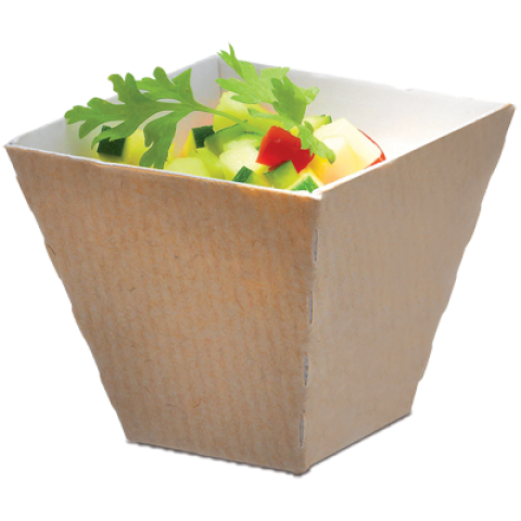 Comatec Disposable Dish, 1-3/4 oz., 1-15/16"L x 1-15/16"W x 1-7/10"H, square, geometric, heat resistant up to 375°F, corrugated cardboard, brown (300 per pack)