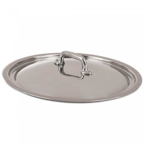 Mauviel M'Cook Pot/Pan Lid, 11" dia., round, riveted cast stainless steel stay-cool handle, dishwasher safe, 5-ply 18/10 stainless steel, polished finish