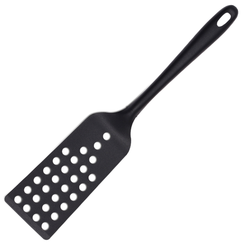 Spatula, 12-1/2", perforated, heat resistant up to 428°F (220°C), ergonomic handle, hanging hole, nylon, black
