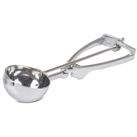 Stockel Scoop, size 24, 1.4 oz., 9"L overall, round, chrome plated brass handles, stainless steel, Made in Germany