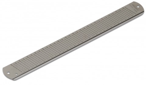 Microplane® Zester, 12"L x 1-1/4"W, fine blade, for zesting citrus rinds and grating hard cheeses, garlic, and ginger, includes (1) protective cover, dishwasher safe (top rack), surgical grade stainless steel