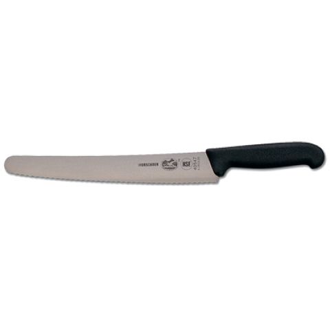 Victorinox Bread Knife, 10", stamped, serrated, high carbon stainless steel, plastic handle, black, Made in Switzerland, NSF (SOLD IN US ONLY)