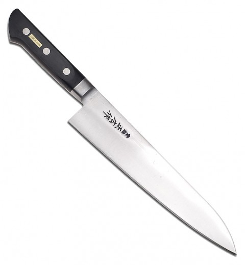 Masahiro Chef Knife, 8", forged, carbon steel blade, plastic handle, black, Made in Japan