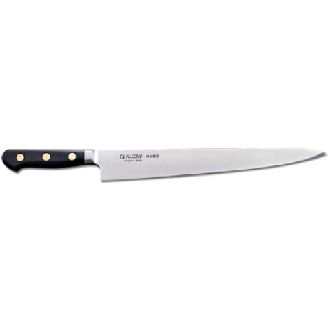 Misono Slicer, 9-1/2"L, forged, high carbon steel blade, wood handle, black