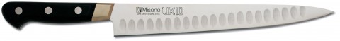Misono UX-10 Chef's Slicer, 11"L, forged, hollow ground, high carbon stainless steel blade, wood handle, black