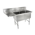 "B" Series Sink, 2-compartment, 54"W x 25-1/2"D x 44"H overall size, (2) 16"W x 20" front-to-back x 14" deep compartments, (1) 18" left drainboard, 10"H boxed backsplash with 45° top and 2" return, (1) set of splash mount faucet holes with 8" centers, 3-1/2" die-stamped drain openings, 16/300 stainless steel construction, stainless steel legs, adjustable side bracing, adjustable bullet feet, NSF, CSA-Sanitation (Available in Effingham and Nevada)