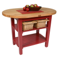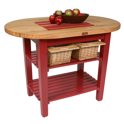 Eliptical C-Table, 60" x 30" x 35"H, 1-1/2" thick edge grain butcher block top, Northern Hard Rock Maple, with Oil Finish, with (2) slatted undershelf, painted base