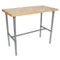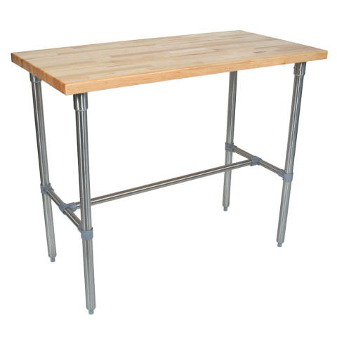 Cucina Classico Table, 48"W x 24"D x 35"H overall size, 1-1/2" thick edge grain top, Northern Hard Rock Maple, with Varnique finish, stainless steel legs, center bracing, & bullet feet