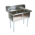 E-Series Sink, 2-compartment, 53"W x 29-1/2"D x 43-3/4"H overall size, (2) 24"W x 24" front-to-back x 14" deep compartments, 9-3/4"H boxed backsplash with 45° top and 2" return, (1) set of splash mount faucet holes with 8" centers, 3-1/2" die-stamped drain openings, 18/300 stainless steel construction, galvanized legs & gussets, adjustable plastic bullet feet, NSF, CSA-Sanitation (Available in Effingham)