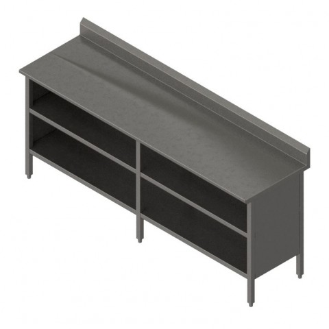 Work Table, cabinet base with open front, 96"W x 30"D, 16/300 stainless steel top with 5" backsplash, Stallion Safety Edge front, 90° turndown on sides, stainless steel base, undershelf, & 1" adjustable bullet feet, all welded set-up, NSF (image shown with optional midshelf)