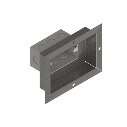Single gang junction box (empty), welded in stainless steel recessed bracket, mounts in 4" electrical chase in modular base work tables