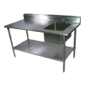 Work Table With Prep Sink, 48"W x 30"D x 40-3/4"H overall size, (1) 16"W x 20" front-to-back x 12" deep sink bowl on right, 5"H backsplash, includes 10" swing spout faucet 4" O.C., 16/300 stainless steel top, galvanized legs & adjustable undershelf, 1" galvanized adjustable bullet feet, NSF, CSA-Sanitation, KD (available in Effingham and Nevada)