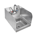 Pro-Bowl Hand Sink, wall mount, 12"W x 14-1/2"D x 12-1/4"H overall size, 9"W x 9" front-to-back x 5" deep bowl, splash mount faucet holes with 4" centers, 2" drain opening with basket drain, with left & right side splash, all stainless steel construction, includes mounting bracket, NSF, CSA-Sanitation (splash mount faucet included) (Available in Effingham)