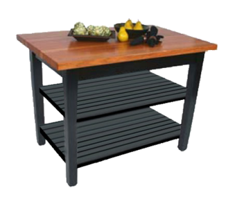 Rouge et Noir Le Classique Table, 48"W x 30"D x 35"H overall size, 1-1/2" thick edge grain top, American Cherry, with Varnique finish, (2) black slatted undershelves, tapered legs, black painted base