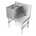 Slim-Line Underbar Blender Station, freestanding with dump sink, 24"W x 18"D x 32-1/2"H overall size, 12"W blender shelf on right, 10"W x 14" front-to-back x 6" deep fabricated sink bowl, 3"H backsplash on left, (1) set of removable splash mount faucet holes with 4" centers, 18/300 stainless steel construction, stainless steel legs & side bracing, adjustable stainless steel bullet feet, NSF (weights are subject to additional packaging) (Available in Effingham and Nevada)