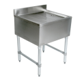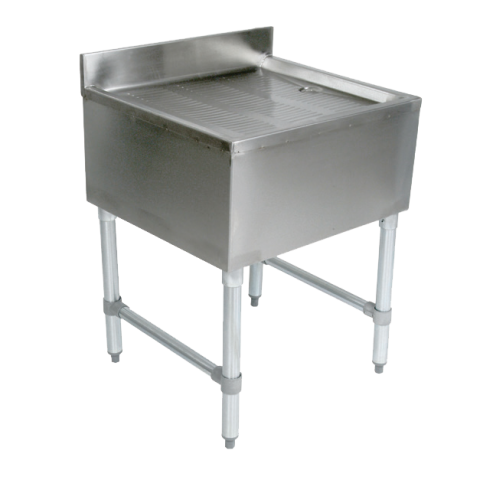 Slim-Line Underbar Drainboard, freestanding, 12"W x 18"D x 32-1/2"H, drainboard with top drain and removable perforated insert, 3"H backsplash, 18/300 stainless steel construction, stainless steel legs & side bracing, adjustable stainless steel bullet feet, NSF (weights are subject to additional packaging)