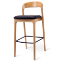 Wooden Bar Stool, contour back, horse-collar style back rest. padded contour seat, german beech, tongue & groove hardwood construction, leg rest, Quickship