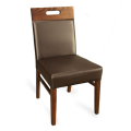 Side Chair, upholstered padded square inset back, handhold back, pull-over spring seat, German beech, tongue & groove hardwood construction, expresso vinyl, walnut frame, Quickship