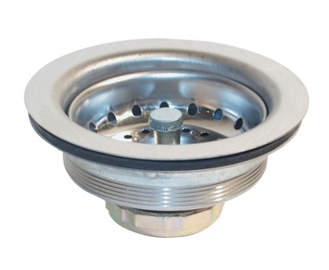 Krowne 3-1/2" Kitchen Sink Drain, with basket, 4-1/2" top dia., 1/2" NPS male, includes locknut & washer, stainless steel