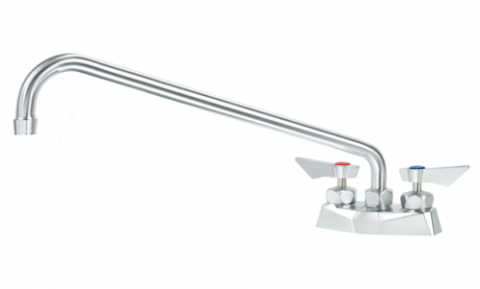 Krowne Diamond Series Faucet, Deck Mount, 4" Centers, 16" swing spout, 1.8GPM aerator, ultra-polish satin finish, Solid chrome plated brass base, lever handles, stainless steel 1/4 turn high-performance ceramic cartridge valves with integral check valve to prevent cross-contamination, 1/2" NPT male, (2) 3/8" stainless steel braided flexible supply hoses, Includes 1/2" NPT Close elbows w/ swivel compression fittings on faucet side, and 3/8" compression fitting on water supply side, includes mounting nipples, washer, and lock nuts, LIFETIME WARRANTY, NSF, CSA