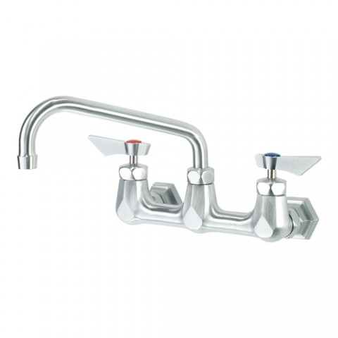 Krowne Diamond Series Faucet, wall-mounted, 8" centers, 8” swing spout, quarter-turn stainless steel ceramic cartridge valve, includes internal check valves to prevent backflow & cross contamination, ultra-polish satin finished brass, low lead compliant, NSF, cCSAus, ADA Compliant