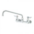 Diamond Series Faucet, wall-mounted, 8" centers, 12" swing spout, lever handles, quarter-turn ceramic cartridge valve, includes mounting kit & E-Z install flexible water line kit, ultra-polish satin finish, NSF, cCSAus, ADA Compliant
