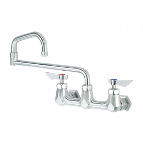 Krowne Diamond Series Faucet, wall-mounted, 8" centers, 18” jointed spout, quarter-turn stainless steel ceramic cartridge valve, includes internal check valves to prevent backflow & cross contamination, ultra-polish satin finished brass, low lead compliant, NSF, cCSAus, ADA Compliant