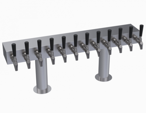 Krowne Double T-Head Tower, twelve faucets, handles and faucets not included, 36" long box, glycol cooled, brushed stainless steel finish