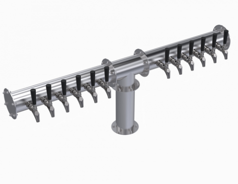 Krowne Pipe T-Head Tower, twelve faucets, handles and faucets not included, 43-3/4" OA length, glycol cooled, brushed stainless steel finish