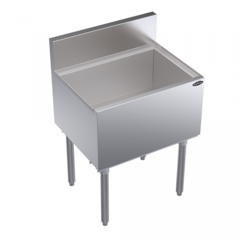 Royal Series Underbar Ice Bin/Cocktail Unit, 24"W x 19"D O.A., 74-lbs ice capacity, 12" deep stainless steel bin liner, 1" drain, stainless steel top, front & sides, galvanized steel back & bottom, stainless steel legs with adjustable thermoplastic bullet feet, NSF