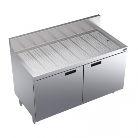 Royal Series Underbar Drainboard with cabinet base & (2) locking hinged doors, 48"W x 24"D, embossed drainboard top, stainless steel top, front, & sides, stainless steel legs with adjustable thermoplastic bullet feet, NSF (Midshelf optional, not standard)