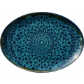 Platter, 13-3/4”L x 5-7/8”W x 1”H, oval, dishwasher safe, microwave safe, oven safe, vitrified china, bold blue and black pattern, Mirage (6 each per case)