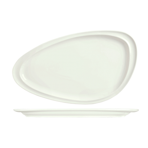 (Formerly Syracuse China) Plate, 13-3/4"L x 7-1/2"W, triangular, narrow rim, fully vitrified, porcelain, Slenda® pattern & shape, White Royal Rideau™ body color (12 each per case)