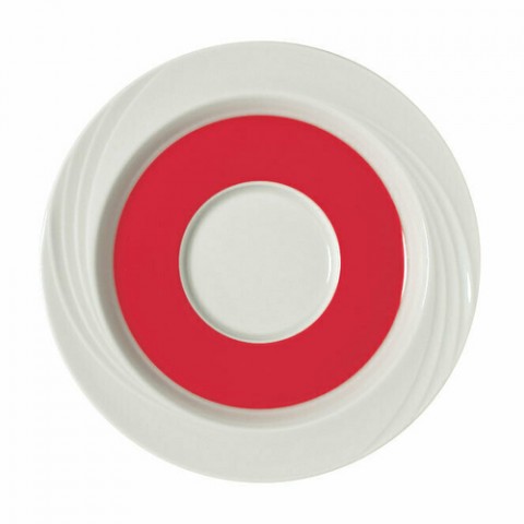 (Formerly Syracuse China) Saucer, 6-5/8" dia., 2-3/8" well, round, porcelain, Donna Senior pattern, Schonwald, Continental White™ with red band (12 each per case)