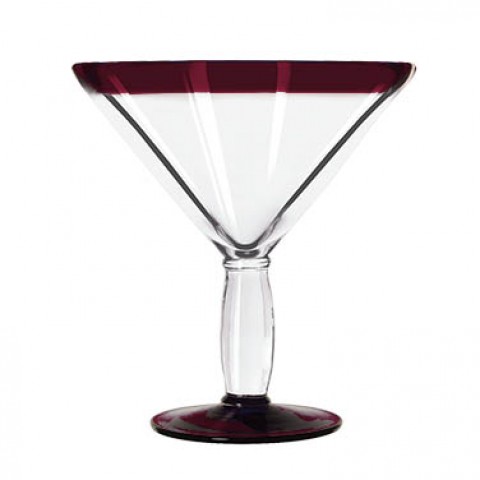 Cocktail Glass, 24 oz., with red rim, anneal treated, dishwasher and microwave safe, hand blown, glass, Aruba (H 7-5/8"; T 6-1/2"; B 4"; D 6-1/2") (12 each per case)