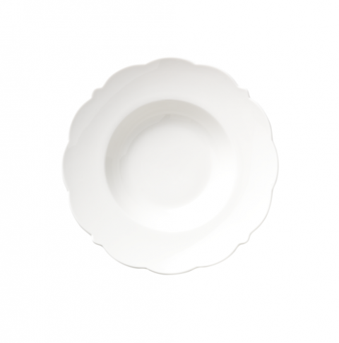 (Formerly Syracuse China) Astor Rimmed Soup Bowl, 9 1/2" dia., round, scalloped rim, smooth polished foot, stackable, dishwasher and microwave safe, porcelain (24 each per case)