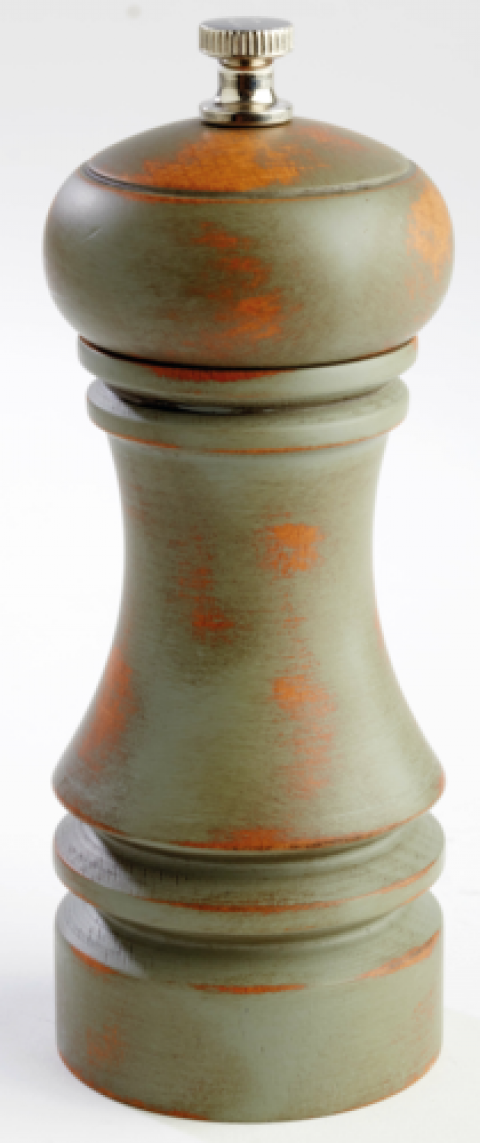 Salt Mill, 2-1/4" dia. x 6"H, stainless steel mill, adjustable grind, German Beachwood, vintage green, Mills, APS® Germany (4 each per case)