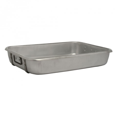 Roasting Pan, 18-1/2" x 26-1/2" x 4-3/4", with drop handles, strapped, 10 gauge, 300 series aluminum