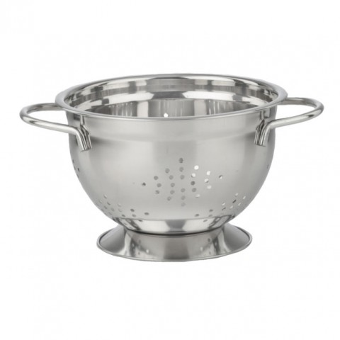 Colander, 2 qt., 7-3/4" dia., footed, heavy duty, 23 gauge, stainless steel