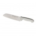Gladiator Santoku Knife, 7", granton hand honed edge, forged, high carbon stainless steel, plastic handle, white, NSF (clam packed)