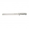 Gladiator Slicer Knife, 12", serrated edge, hand honed edge, forged, high carbon stainless steel, plastic handle, white, NSF (clam packed)